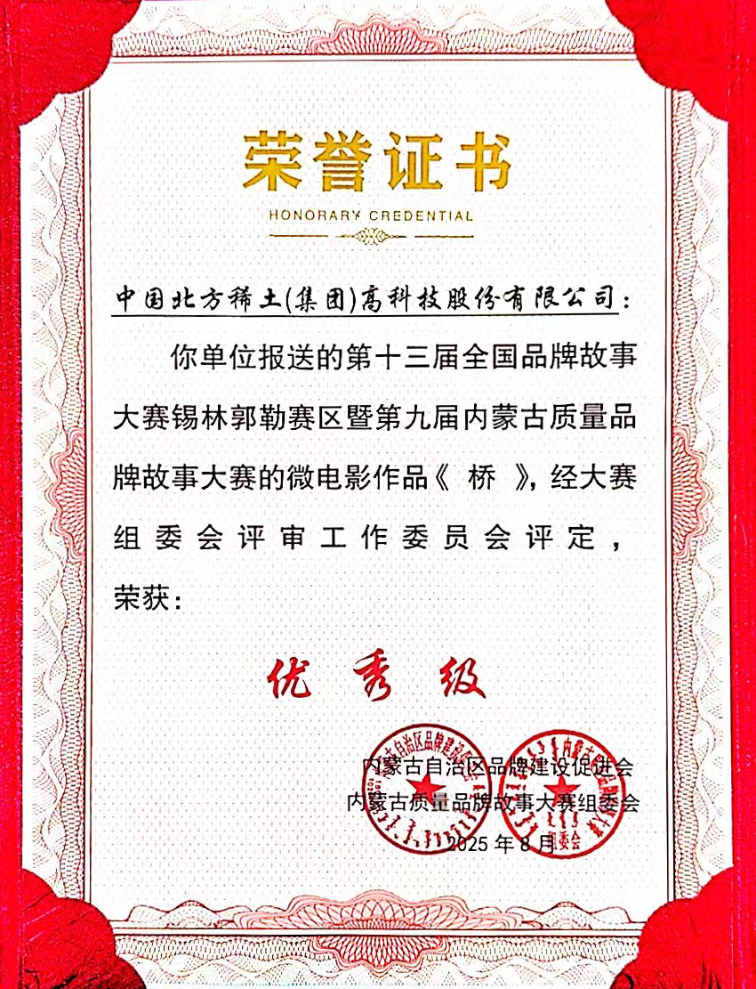 近日,第十三届全国品牌故事大赛锡林郭勒(内蒙古)赛区暨第九届内蒙古质量品牌故事大赛圆满落幕。北方稀土(600111)分子公司稀交所微电影作品《桥》获得“优秀级”荣誉称号,该作品将代表自治区参加全国品牌故事大赛奖项的角逐。